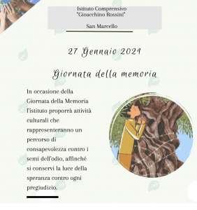 27 Gennaio 2021 – Giornata della Memoria Istituto Comprensivo Statale "GIOACCHINO ROSSINI" Pubblicato il 11 Gennaio 2021 da Paola Pittori11 Gennaio 2021